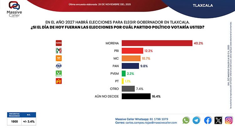 Se cuela MC a la tercera posición rumbo a renovación de la gubernatura en Tlaxcala