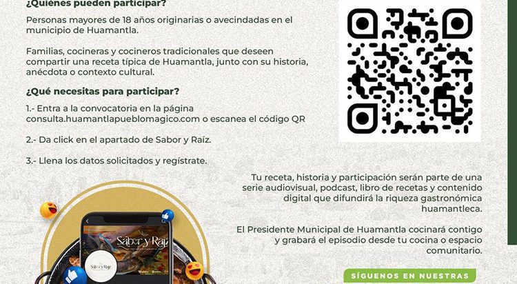 Con la segunda temporada de ‘Sabor y raíz’, el gobierno municipal de Huamantla convoca a compartir las recetas que dan identidad como pueblo mágico