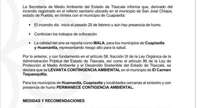 Huamantla y Cuapiaxtla se mantienen en contingencia ambiental Por Selene Sosa Pobladores de la localidad de San José Chiapa, Puebla evidenciaron que el Relleno Sanitario que se incendió ya se encontraba clausurado, pese a ello, camiones recolectores siguen haciendo descargas, […]