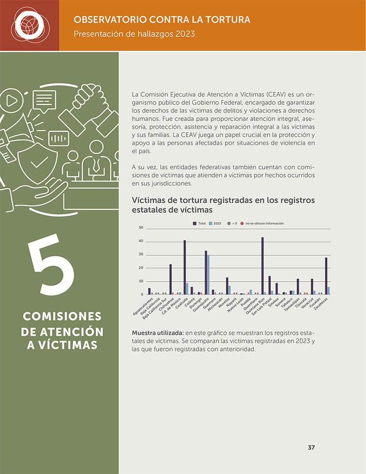 Otra situación remarcada en el Informe de Hallazgos 2023 fue que, para dicho trabajo, la Comisión Ejecutiva de Atención a Víctimas (CEAV) de Tlaxcala, no brindó información alguna sobre el registro de víctimas de tortura.