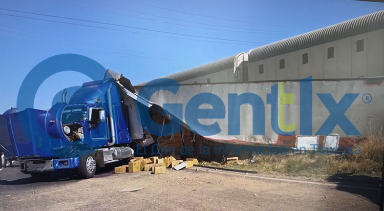 Esta mañana, un trailero intentó ganarle el paso al tren, por lo cual su unidad fue embestida en el cruce de la carretera Huamantla-Xalpatlahuaya.