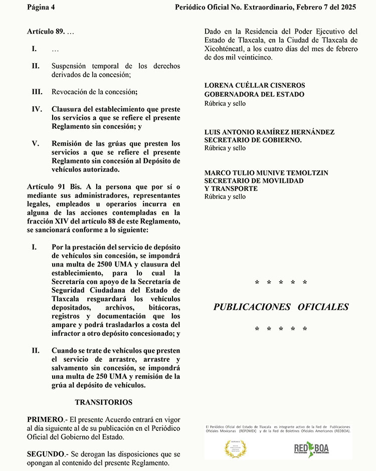 El pasado 07 de febrero del presente año, el la Oficialía Mayor de Gobierno (OMG) publicó en el Periódico Oficial del Estado el “Acuerdo por el que se Reforman y Adicionan Disposiciones al Reglamento de los Servicios Auxiliares de Arrastre, Arrastre y Salvamento, Depósito de Vehículos y Encierros Oficiales”.