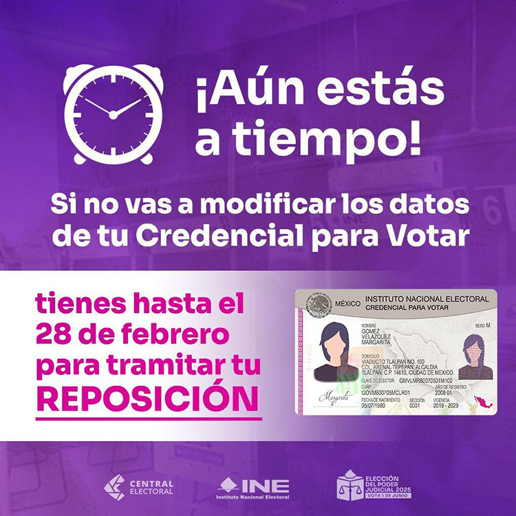 Por otro lado, el INE advirtió a las personas titulares de credenciales que fueron tramitadas hace dos años, que el 28 de febrero es la fecha límite para recogerlas o serán canceladas y destruidas, por lo que deberán iniciar un nuevo trámite.