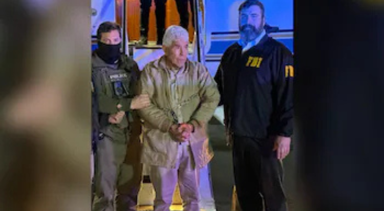 Luego de haberse confirmado su salida de México, Caro Quintero, también conocido como ‘El Narco de narcos’, arribó a Nueva York, escoltado por elementos del FBI, quienes se tomaron una foto con él mientras bajaba de la aeronave esposado.