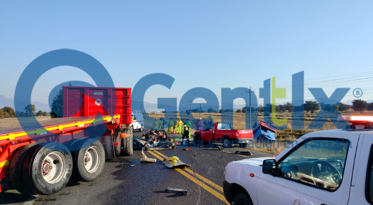 Esta mañana sobre la carretera federal Apizaco-Tlaxco, a la altura de Atlangatepec, un tráiler colisiona a dos particulares con saldo de un fallecido, tres heridos y daños materiales considerables.