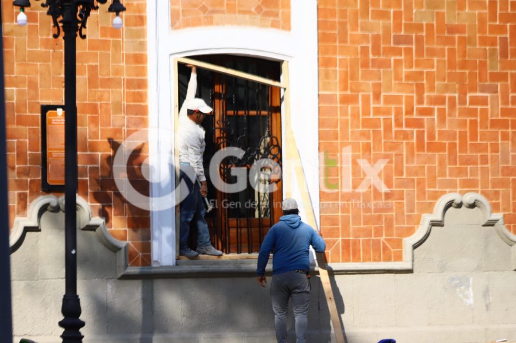 Con motivo de la celebración del Día Internacional de la Mujer el 8 de marzo, trabajadores del gobierno estatal de Tlaxcala tomaron medidas de prevención en el Palacio de Gobierno. Como parte de estas medidas, retirando luminaria y protegiendo las ventanas del edificio con tablas para evitar posibles daños durante las manifestaciones .