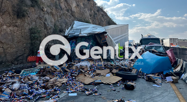 Un grave accidente vial ocurrió esta tarde en el kilómetro 211+200 del Arco Norte, en el municipio de Ixtacuixtla de Mariano Matamoros, Tlaxcala, dejando un saldo preliminar de dos personas fallecidas y una lesionada. El percance, que involucró a al menos diez vehículos, incluyó un tráiler cargado con botellas de jugo, donde viajaban las víctimas mortales.