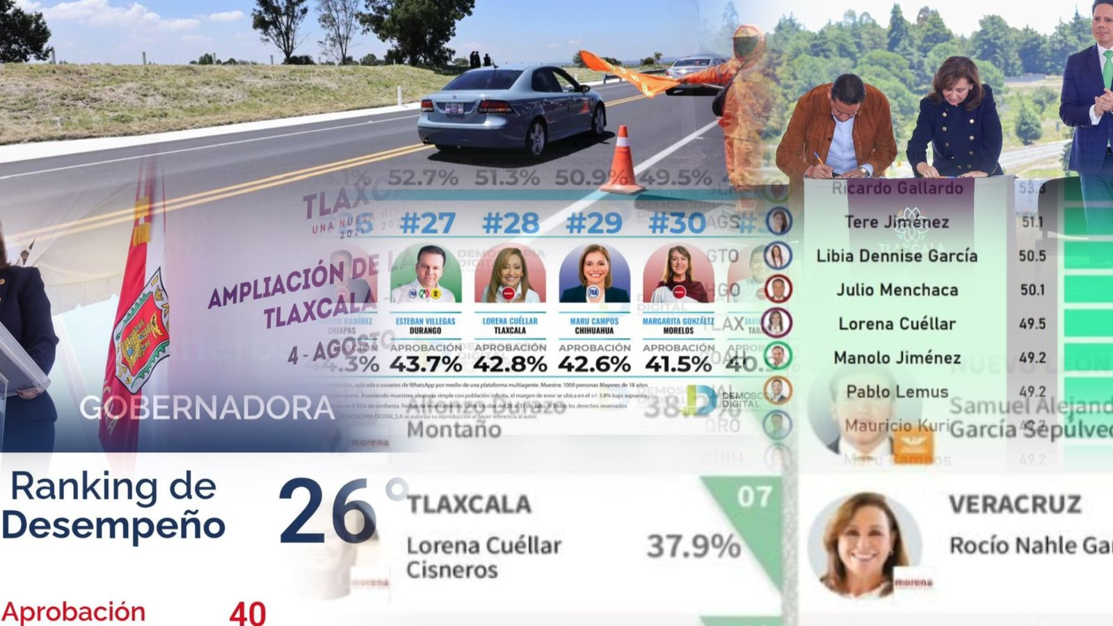 Sin importar el ranking en el que la colocan, en cuatro encuestas nacionales la gobernadora Lorena Cuéllar no alcanza una calificación aprobatoria entre las opiniones ciudadanas, solamente en la de Mitofsky la morenista obtuvo los mejores números, la ubica en séptimo lugar con 51 por ciento, lo que significa que 5 de cada 10 tlaxcaltecas la reprueban.
