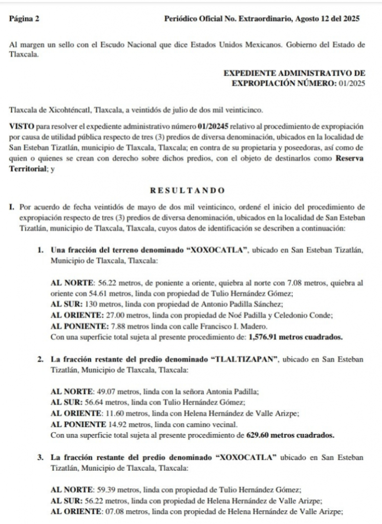Por no hacer valer su derecho, Gobierno Local expropia tres predios en Tlaxcala
