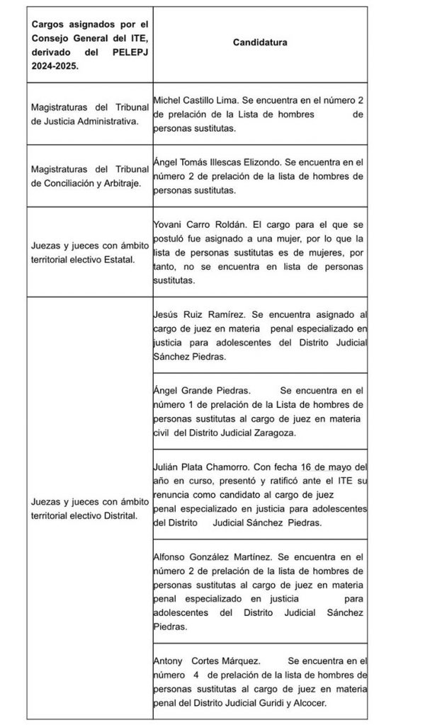 De las ocho candidaturas canceladas, una corresponde a la persona electa como juez en materia Penal del distrito judicial de Sánchez Piedras.