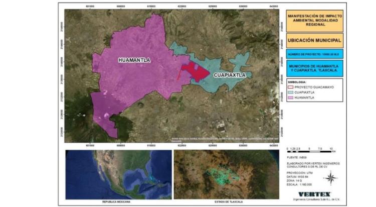 El parque solar se instalará entre los municipios de Cuapiaxtla y Huamantla, en un predio de 1,508.89 hectáreas. De ese total, 469.33 hectáreas estarán destinadas a módulos solares; 74.35 hectáreas a caminos internos; 0.72 hectáreas a la subestación eléctrica de elevación; 0.27 hectáreas al edificio de operación y mantenimiento; 0.67 hectáreas a estaciones de conversión; 3.95 hectáreas a la subestación de maniobras y 6.04 hectáreas al camino de acceso. La línea de transmisión utilizará 14.93 hectáreas.