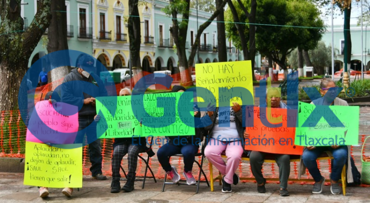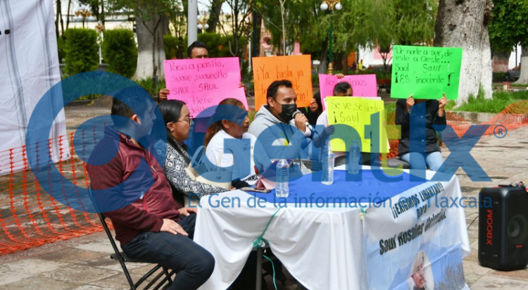 La mañana de este lunes, habitantes de la comunidad de San Pedro Tlalcuapan se manifestaron frente a Palacio de Gobierno para exigir justicia y la liberación de Saúl Rosales N., quien enfrenta un proceso legal desde hace un año.