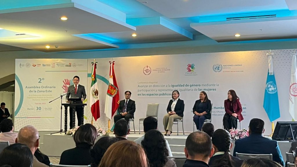 La conferencia se desarrolló este martes 30 de septiembre en el Hotel Holiday Inn, en el marco de la Segunda Asamblea Ordinaria de la Zona Este de la Federación Mexicana de Organismos Públicos de Derechos Humanos, que reunió a titulares de los tres poderes de gobierno en la entidad.