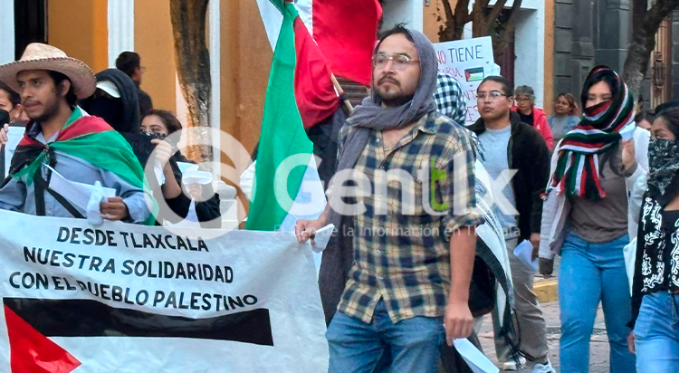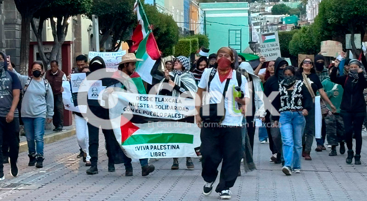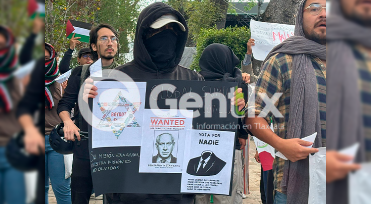 Este día, integrantes de una organización civil se manifestaron en las calles para pronunciarse en contra de lo que calificaron como genocidio en Gaza. Durante la movilización portaron banderas y pancartas con mensajes de solidaridad hacia el pueblo palestino, además de exigir un alto inmediato a la violencia.