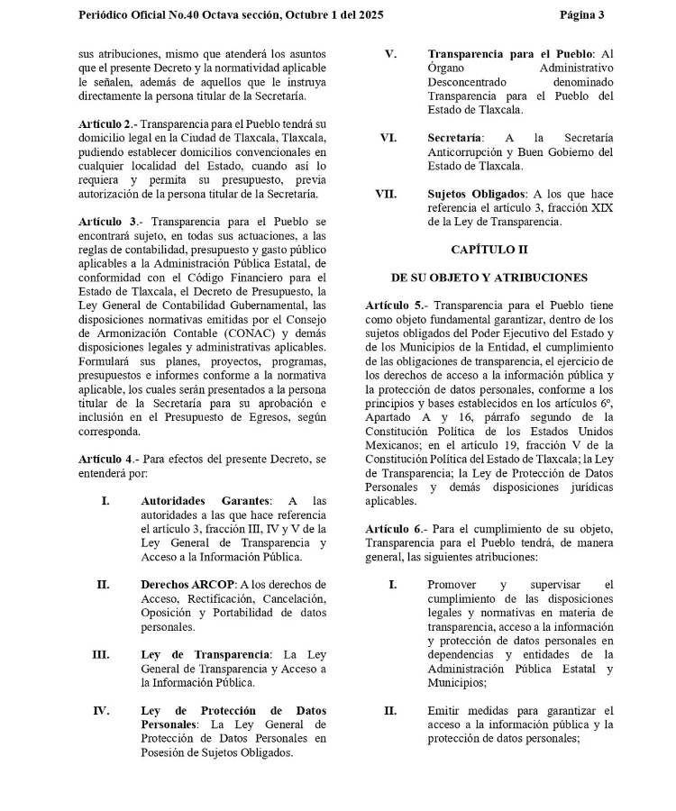 El órgano “Transparencia para el Pueblo del Estado de Tlaxcala” surge “Con autonomía funcional y capacidad para garantizar dichos derechos, bajo los principios de certeza, legalidad, independencia, imparcialidad, eficacia, objetividad, profesionalismo y transparencia y máxima publicidad”.