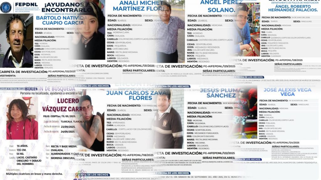 Según las páginas oficiales en Facebook de la Comisión Estatal de Búsqueda de Personas en Tlaxcala (CEBPTlax) y de la Fiscalía Especializada en Personas Desaparecidas y No Localizadas (FEPDNL), durante septiembre emitieron un total de 22 boletines de búsqueda, de los cuales, 10 corresponden a mujeres y 13 a menores de edad.