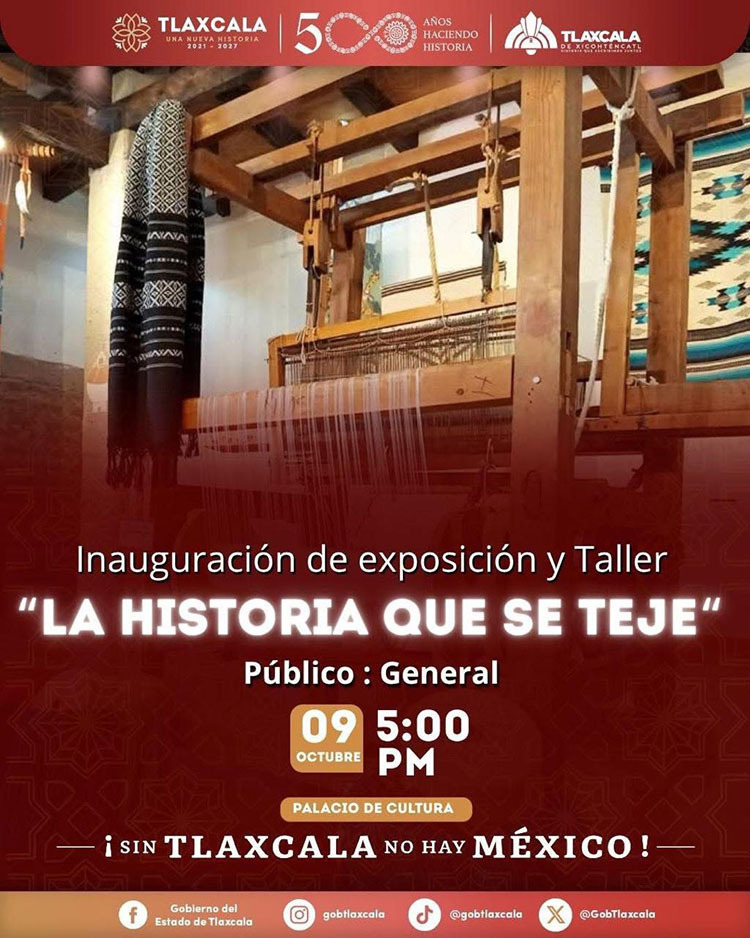 La participación del municipio se realiza a través de la Dirección de Cultura y la Jefatura de Artesanos, a cargo de Ana Laura Hernández Varela, quien estará presentando el taller de tintes naturales “La historia que se teje”, los días 9, 10 y 11 de octubre, en las instalaciones de la Casa de Cultura del Estado de Tlaxcala.