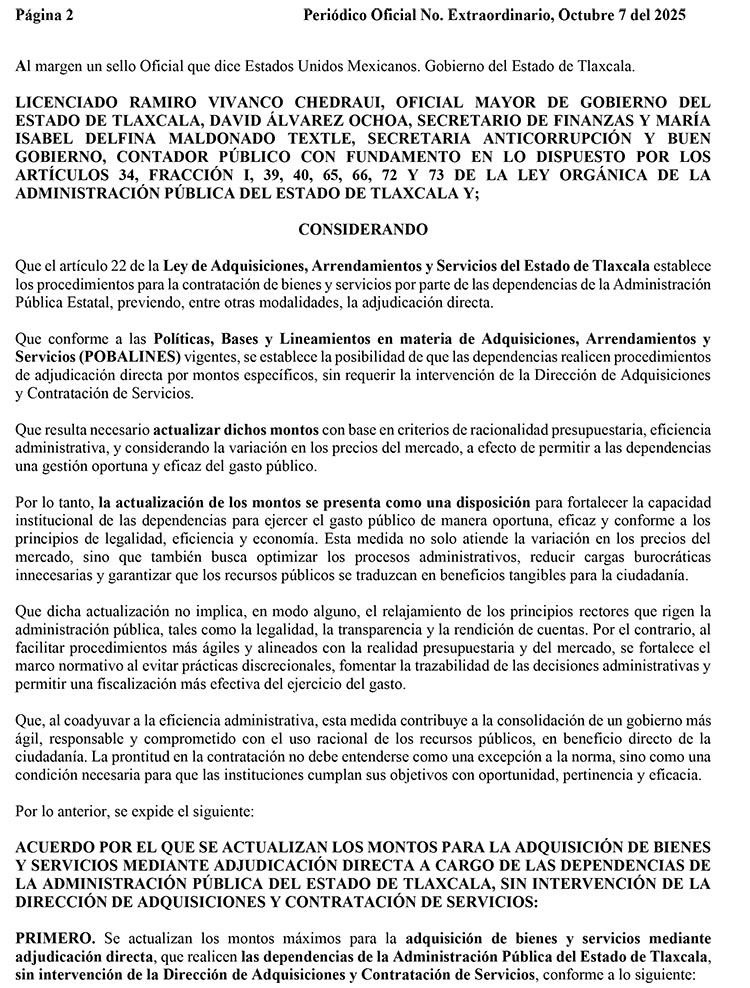 De ahí que se publicó el “Acuerdo por el que se actualizan los montos para la adquisición de bienes y servicios mediante adjudicación directa a cargo de las dependencias de la administración pública del estado de Tlaxcala sin intervención de la Dirección de Adquisiciones y Contrataciones de Servicios”.