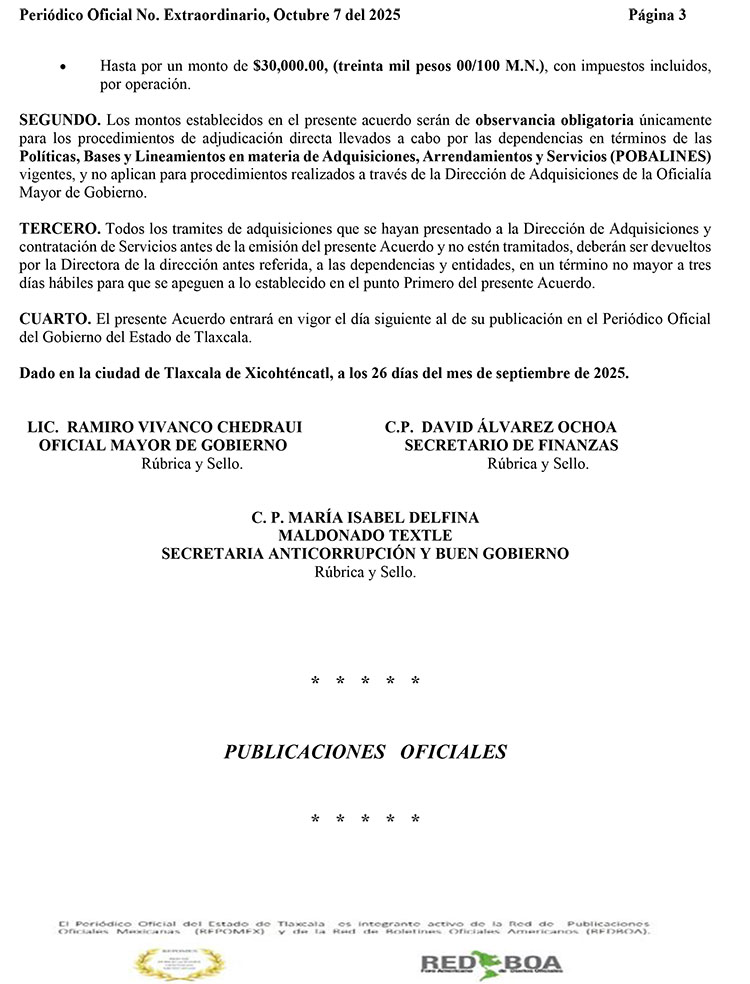 En Número Extraordinario en el Periódico Oficial, la OMG actualizó el monto que las dependencias gubernamentales pueden gastar conforme a las Políticas, Bases y Lineamientos en Materia de Adquisiciones, Arrendamientos y Servicios (PBALINES), establecidos en el Artículo 11 de la Ley en la materia.
