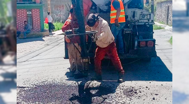 En esta ocasión, se realizaron trabajos en la calle Ferrocarril Mexicano, en la localidad de Santa María Ixtulco, donde cuadrillas atendieron puntos afectados por el deterioro del pavimento.