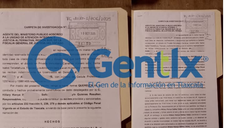 Tras la agresión sufrida por una estudiante dentro del Colegio de Bachilleres del Estado de Tlaxcala (Cobat) plantel 14, en el municipio de Natívitas, la familia de la víctima presentó una denuncia formal ante la autoridad ministerial, señalando como probable responsable a la alumna Hilary Kenia N, por el presunto delito de lesiones.