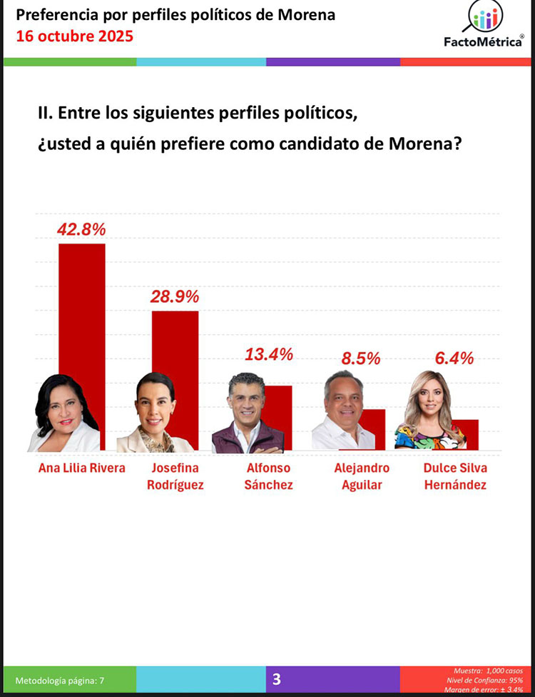 Mientras, Ana Lilia Rivera ya alcanzó un techo del que no avanza y Alfonso Sánchez ocupando ahora una tercera posición.