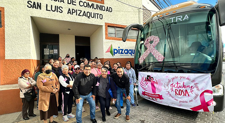Arnulfo Alva ‘El Che’, regidor de Apizaco se sumó a la campaña de mastografías en Apizaquito, con transporte sin costo para que las mujeres de la comunidad pudieran acudir a realizarse el estudio que les ayudará a prevenir el cancer de mama.