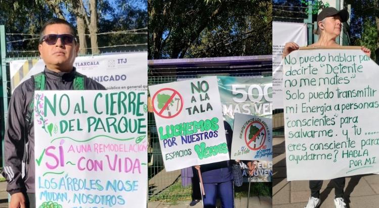 Durante la movilización, los participantes expresaron que no se oponen al mantenimiento del parque, pero sí al derribo de los árboles que forman parte de su ecosistema. “Queremos que el parque se conserve, que se cuide la vida, no que se asesinen los árboles”, expresó una de las voceras del movimiento, al recordar que el sitio pertenece al área federal del Parque Nacional La Malinche, bajo resguardo de la Semarnat.
