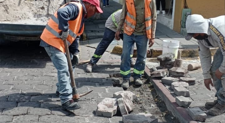 Gobierno municipal de Tlaxcala atiende vialidades con trabajos de renivelación de adoquines