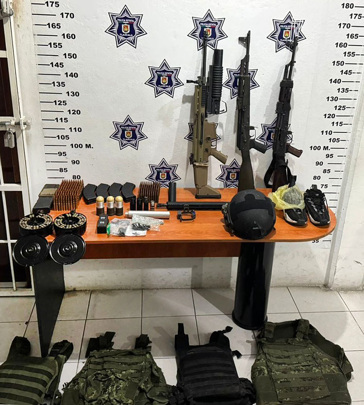 De acuerdo con el parte informativo, al realizar funciones de vigilancia, elementos de la Secretaría de Seguridad Ciudadana (SSC), en coordinación con el Gabinete de Seguridad del Gobierno de México, detuvieron al ahora vinculado a bordo de un vehículo, asegurándole tres armas de fuego tipo fusil, cargadores, cartuchos, un tubo cañón, dos supresores, un silenciador, dos rompellantas, un lanzagranadas, un artefacto explosivo, ocho granadas y equipo táctico.