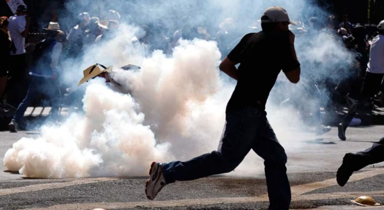 Elementos de la policía lanzaron también gases y balas de goma contra miembros de la prensa que cubrían la protesta, entre ellos el corresponsal de El Universal.