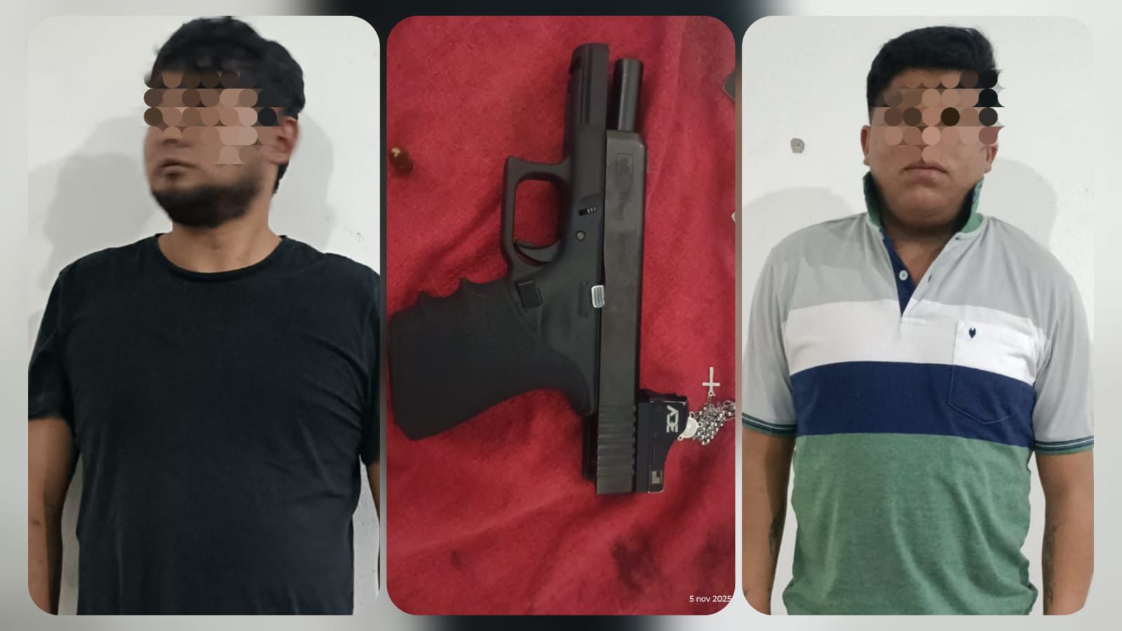 A la dupla de sujetos les fue encontrada un arma de fuego con cartuchos útiles, por lo cual se procedió a ponerlos a disposición de las autoridades correspondientes.