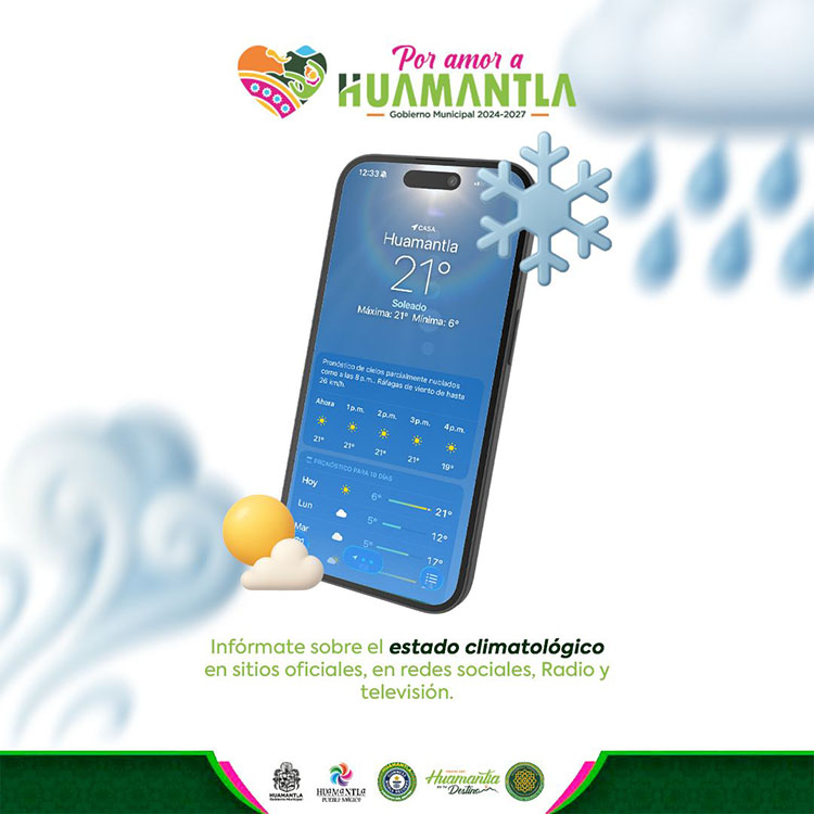 Huamantla, Tlax., 11 de noviembre de 2025.– El H. Ayuntamiento de Huamantla exhorta a la ciudadanía a mantenerse atenta a los reportes meteorológicos y avisos oficiales que se emiten en las plataformas institucionales, ante el descenso de temperatura propio de la temporada invernal.