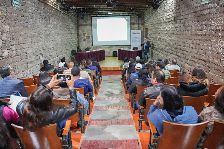En representación del presidente de la AAMTLAX, el secretario técnico Julián Velázquez Nava dio la bienvenida a las y los asistentes en el encuentro celebrado en la Pinacoteca del Estado, donde se contó con la presencia de autoridades de los ámbitos estatal y federal.