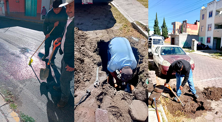 De igual manera, las cuadrillas operativas realizaron trabajos de bacheo derivados de intervenciones hidráulicas en: