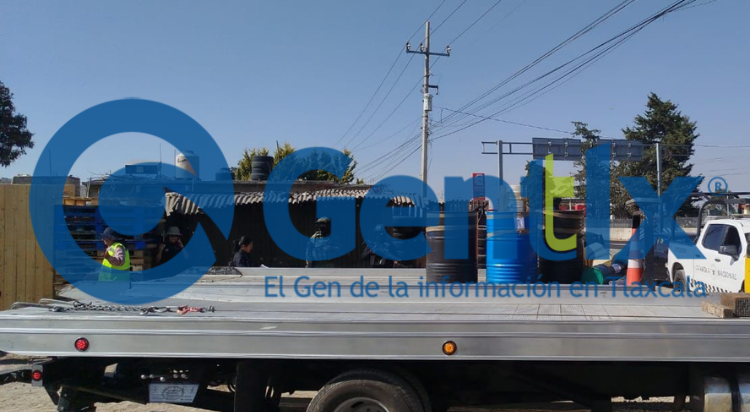 Huamantla, Tlaxcala. – La Guardia Nacional, en coordinación con el Ejército Mexicano y autoridades locales, ejecutó este jueves un cateo en un predio dedicado aparentemente a la venta de tarimas, ubicado en el kilómetro 140 de la carretera México-Veracruz, donde se localizó un centro ilegal de almacenamiento y distribución de combustible robado.