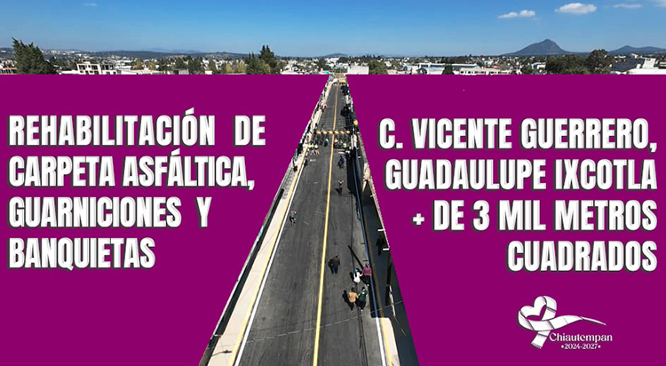 La alcaldesa de Chiautempan, Blanca Angulo Meneses entregó la rehabilitación de la calle Vicente Guerrero en Ixcotla, esto como parte del trabajo continuo del gobierno municipal en el mejoramiento de vialidades en comunidades.