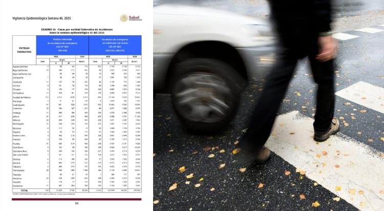 A nivel nacional, el panorama epidemiológico reportó 13,229 hombres y 8,735 mujeres peatones lesionados en 2025, mientras que los accidentes vehiculares ascienden a 129,599 hombres y 84,232 mujeres, lo que permite dimensionar el contraste de incidencia entre Tlaxcala y otras regiones como Guanajuato, Ciudad de México o Jalisco.