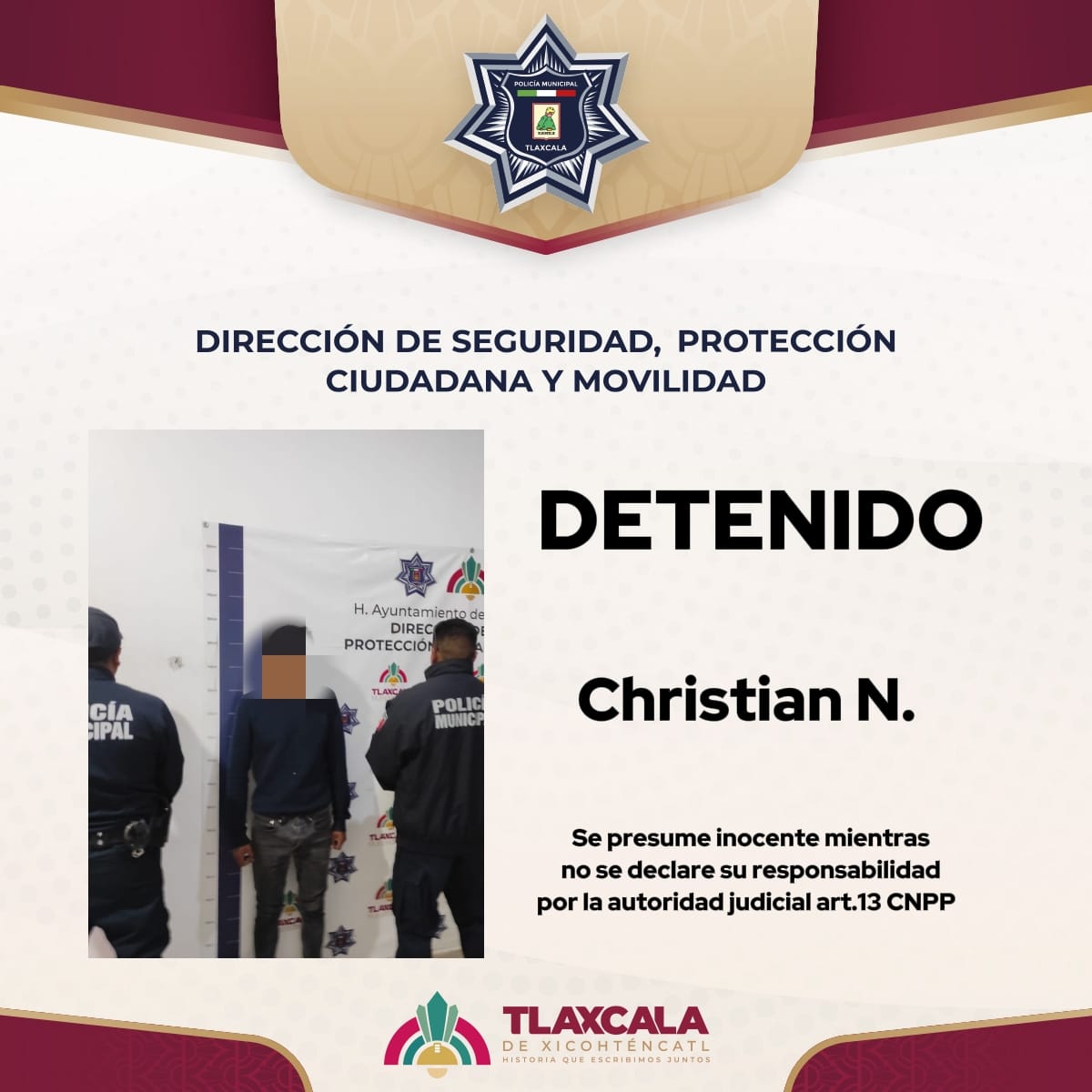 Tras realizar el procedimiento correspondiente, los elementos municipales efectuaron la puesta a disposición conforme marca el protocolo, y trasladaron al detenido ante la Fiscalía General de Justicia del Estado de Tlaxcala (FGJE), autoridad que se encargará de determinar su situación jurídica.