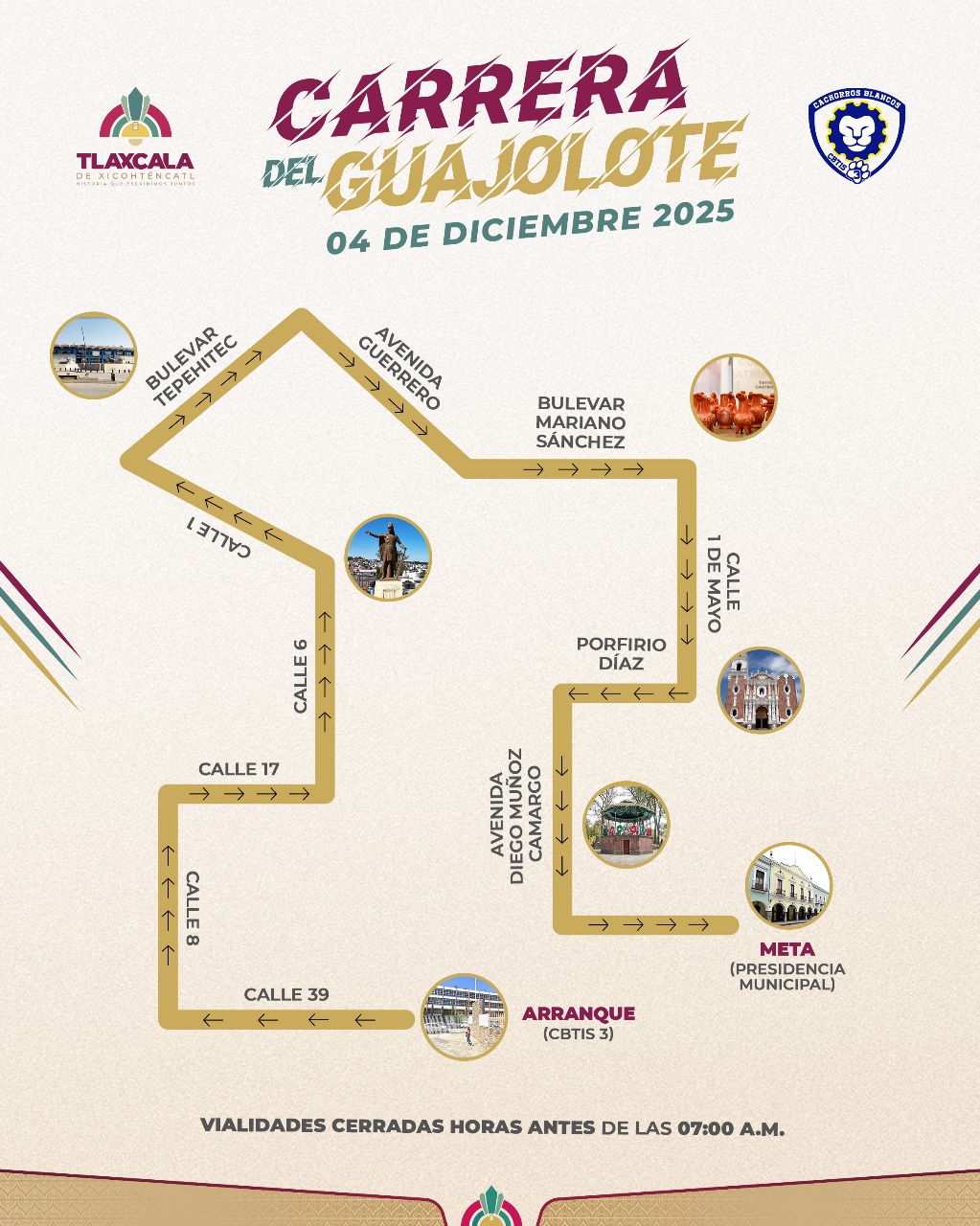 El Gobierno Municipal de Tlaxcala invita a la población a tomar previsiones en sus traslados y a sumarse al espíritu festivo, además de apoyar a las y los corredores y disfrutar de una mañana llena de tradición y convivencia.