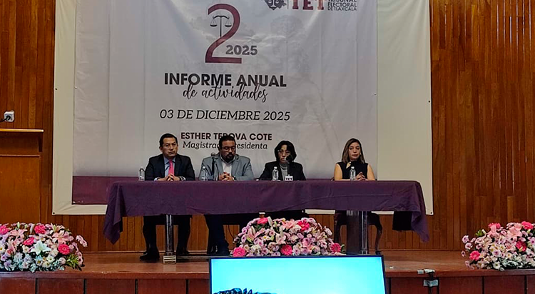 Este miércoles, el Pleno del Tribunal Electoral de Tlaxcala (TET), encabezado por la Magistrada Presidenta Esther Terova Cote, rindió su Segundo Informe Anual de Actividades, con el llamado a la disposición y el trabajo colaborativo de quienes laboran en dicho organismo.