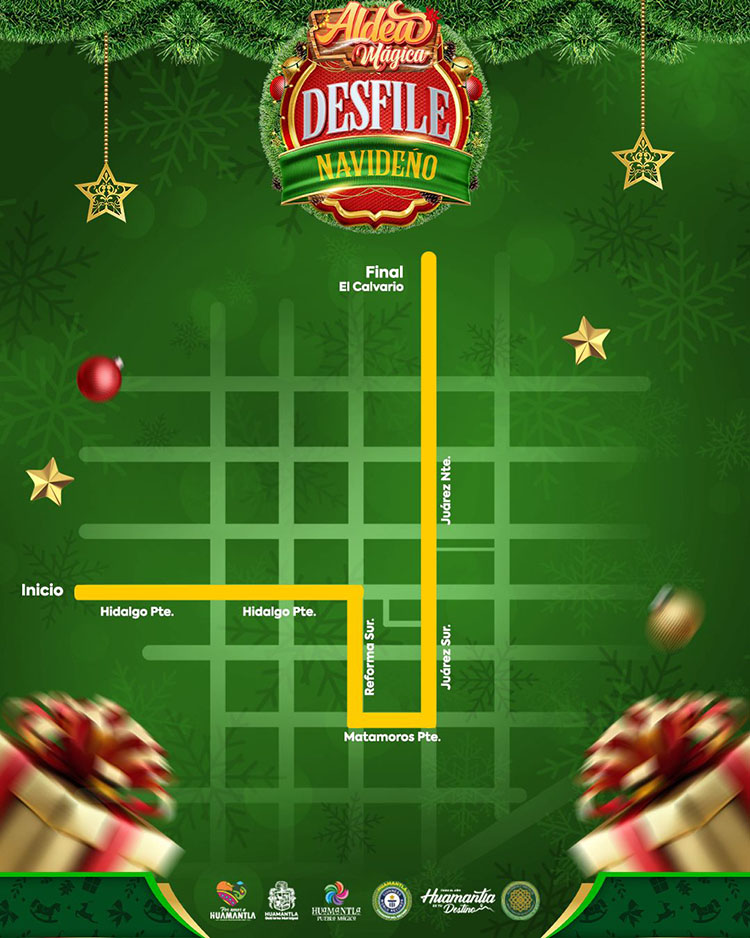 El H. Ayuntamiento de Huamantla invita a las familias huamantlecas y visitantes a disfrutar del Desfile Navideño 2025, que se llevará a cabo este sábado 6 de diciembre a las 18:00 horas como parte de las actividades de la Aldea Mágica.