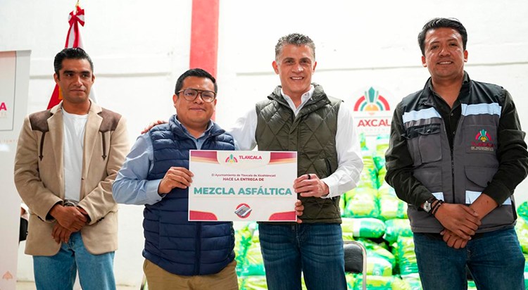 El presidente municipal de Tlaxcala, Alfonso Sánchez García, realizó la primera entrega de 50 toneladas de mezcla asfáltica en frío destinada a reforzar los trabajos de bacheo en 11 comunidades, delegaciones y la zona centro de la capital.
