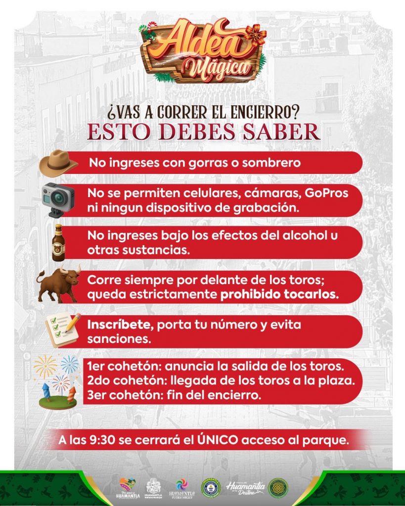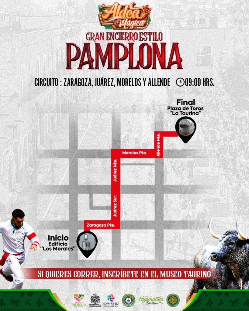 Huamantla, Tlax.— El H. Ayuntamiento de Huamantla informa que mañana se llevará a cabo el Encierro Tipo Pamplona, una de las tradiciones más representativas del municipio, por lo que se hace un llamado a corredores, espectadores y automovilistas a seguir de manera precisa las indicaciones de seguridad y a respetar el recorrido oficial.