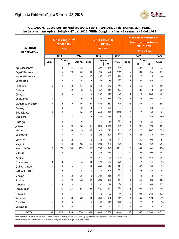 Además, también se reportó un caso de sífilis congénita en el periodo de referencia, mientras que, ñ en 2024 no hubo reportes. También se registraron 80 casos de sífilis adquirida, de los cuales 58 se dieron en hombres y 22 en mujeres.