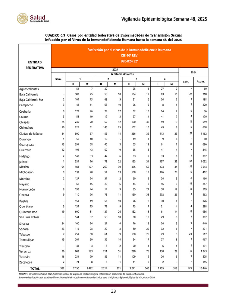 Igualmente, la SSA identificó 371 casos de la infección gonocócica del tracto genitourinario, así como 68 de herpes genital. Sobre el Virus de la Inmunodeficiencia Humana (VIH), se contabilizaron 84 casos, de los cuales 77 son en hombres y siete en mujeres.