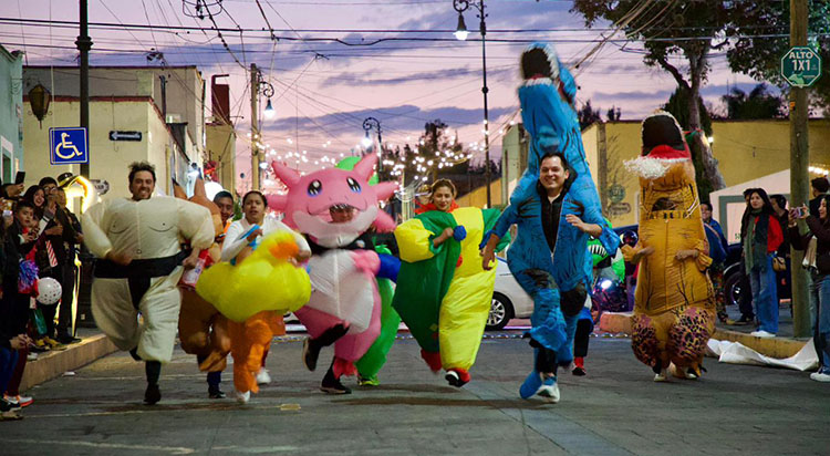 Posteriormente, se realizó la Carrera de Botargas “Nieve, Navidad y Diversión”, en la que participaron escuelas, negocios, empresas y ciudadanía en general. La carrera dio inicio en la calle Hidalgo, esquina con Victoria, y concluyó con la premiación en el Escenario del Parque Juárez, donde las botargas fueron recibidas en medio de un ambiente festivo y familiar.