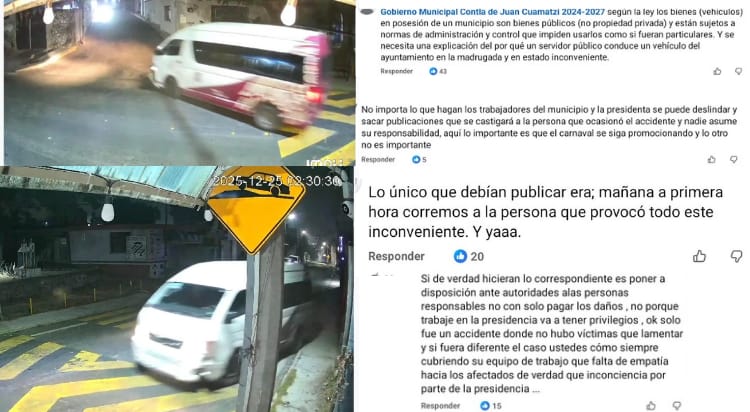 De acuerdo con la denuncia ciudadana, el incidente ocurrió el 25 de diciembre alrededor de las 02:30 horas, sobre la calle 20 de Noviembre, esquina con Trinidad Sánchez Santos. En los reportes difundidos se señala que el conductor, identificado como chofer del gobierno municipal de Contla y presuntamente en estado de ebriedad, impactó dos unidades particulares y posteriormente se dio a la fuga, pese a encontrarse al volante de un vehículo oficial.