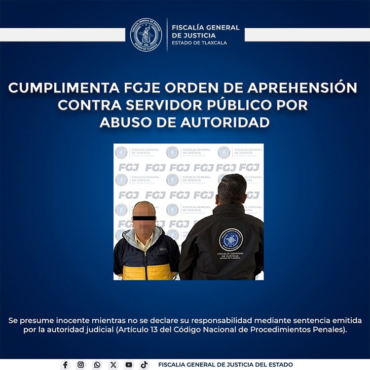 La Policía de Investigación de la Fiscalía General de Justicia del Estado (FGJE) cumplimentó una orden de aprehensión en contra de Antonio N., elemento de la Secretaría de Seguridad Ciudadana (SSC), por su probable responsabilidad en el delito de abuso de autoridad.