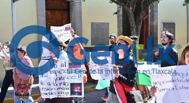 Esta tarde, organizaciones civiles tlaxcaltecas se movilizaron frente al Palacio de Gobierno para fijar su posicionamiento ante los hechos recientes en Venezuela, manifestando su rechazo a la injerencia extranjera y su postura en contra del gobierno de Donald Trump.
